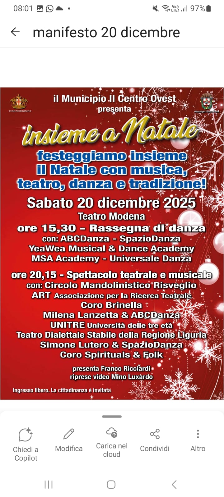 Sabato 20 dicembre 2025 ore 20:15